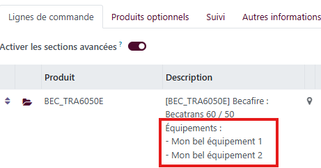 Il est désormais possible d'intégrer automatiquement la liste des équipements liés à un contrat directement dans la description des documents de vente. Cette information est reprise sans ressaisie, au moment de la génération.